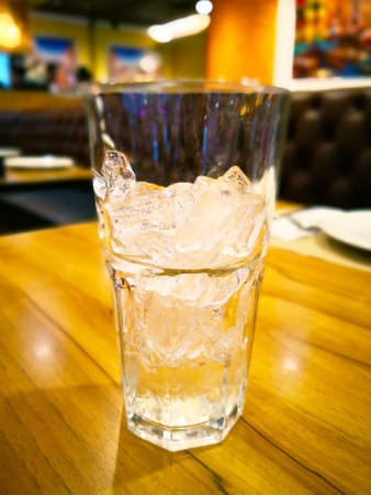 Refreshing and Tempting: A Glass of Iced Water Awaits on the Restaurant Table