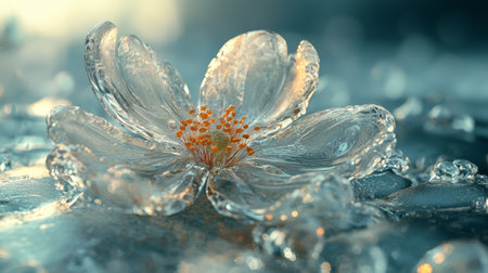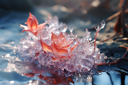 Intricate 3D ice flowers showcase fragile beauty in a cold, crystalline atmosphere