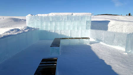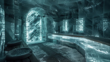 An intricate sauna made completely out of ice providing a unique and extreme wellness experience