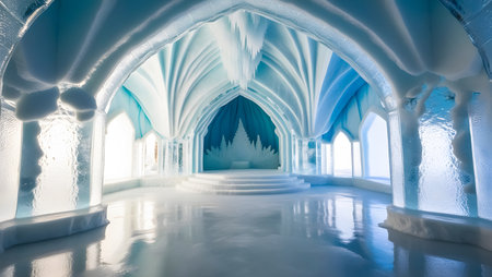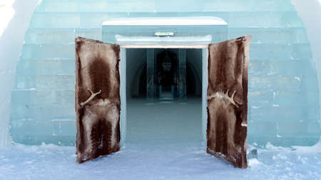 Quebec, Canada-February 20, 2011: entrance hall of the famous ice hotel in Quebec city, Canada