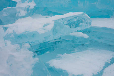 Texture of ice in winter. Pieces of frozen water on a street in the winter. The texture and texture of the frozen water in winter and outdoor.