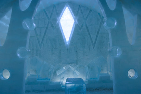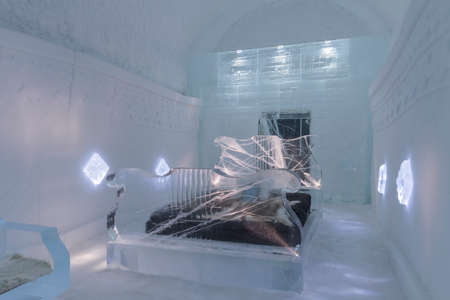 Jukkasjarvi, Sweden - January 04, 2021: Art in the IceHotel in Jukkasjarvi near Kiruna Sweden