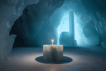 AI Generated. Majestic ice cave illuminated by soft light during the winter season