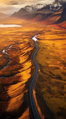 Generative AI : Aerial view of a beautiful landscape with volcano craters and high mountains near Holmsarfossar Iceland