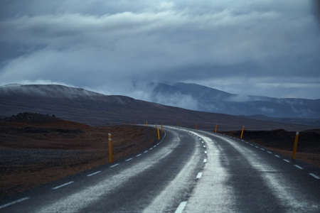 Nature background beautiful landscape mountains road hills clouds Iceland. Outdoor.