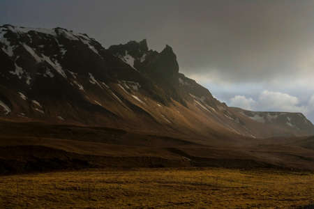 mountains in iceland on stormy day