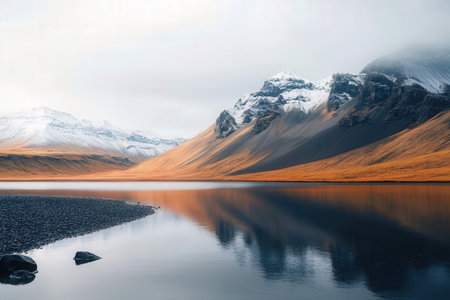 Generative AI, Iceland beautiful foggy wild landscape with mountains, aesthetic muted colors,