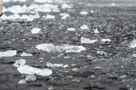 Diamond beach by Jokulsarlon glacier lagoon, Iceland, selective focus