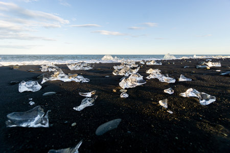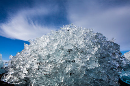Crystal clear ice on beach, Iceland summer season