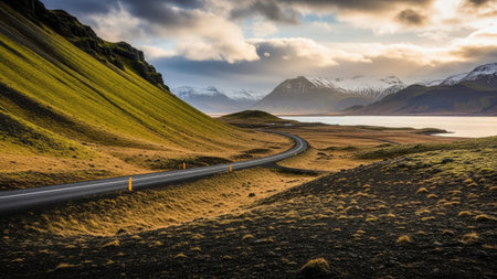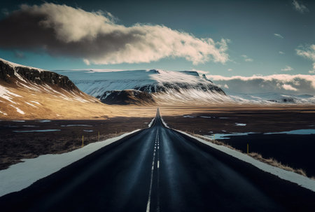 Beautiful panorama of a road in Iceland. Nature composition.