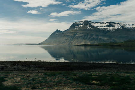 Iceland Mountain reflection with ice and clouds. Snaesfellnes Peninsula