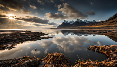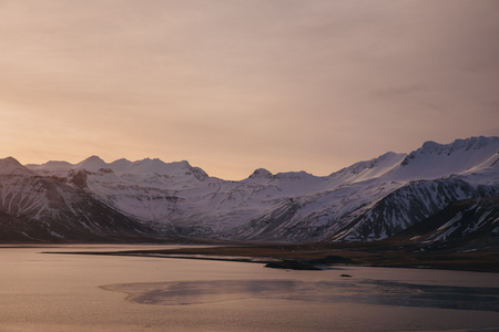majestic icelandic landscape with snow-covered mountains at sunset