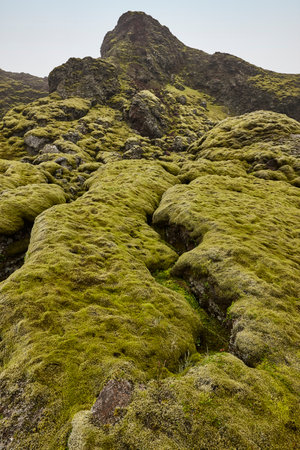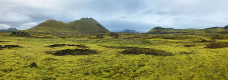 Majestic volcanic landscape covered with moss in Iceland highlands