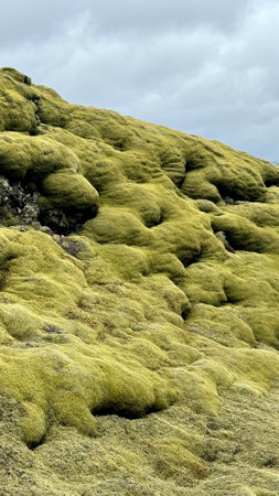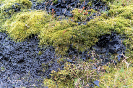 Lush Green Moss Covering a Volcanic Landscape in Iceland