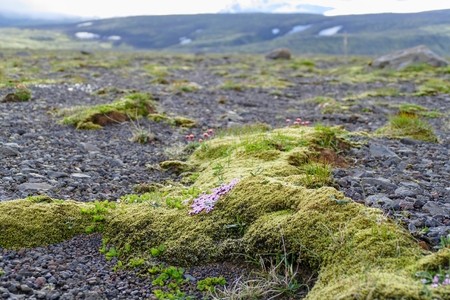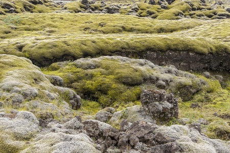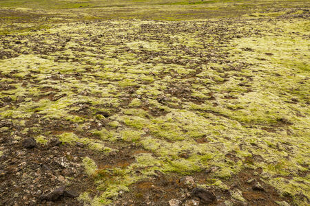 Green mossy lava field in interior of Iceland near Landmannalaugar.
