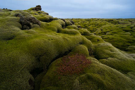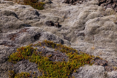 Beautiful landscape with wooly moss on a rainy day in Iceland, autumntime