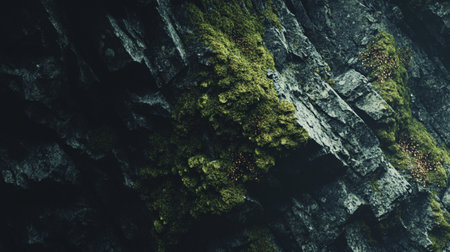 The combination of lighting and shadow, lighting the natural of mosses thriving in crevices.