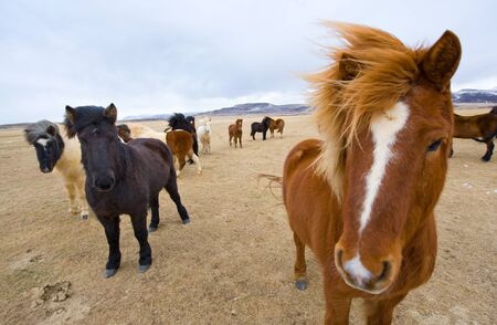 Funny horses in windy weather, Iceland