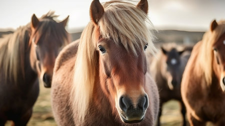 The Icelandic horse may be a breed of horse made in Iceland. Closeup Icelandic steeds. Creative resource, AI Generated