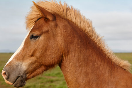 close-up view of beautiful icelandic horse on pasture, hvalfjardarvegur