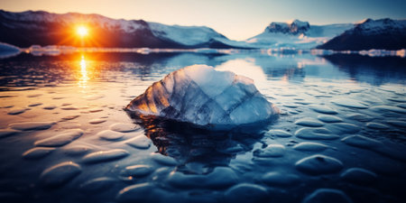 Icelandic glacial lagoon showcases breathtaking ice formations at sunset