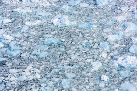 Natural ice blocks in water. Sea ice during freezing winter weather.