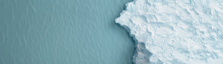 Aerial view of a tranquil water surface meeting a glacier, showcasing the contrast between soft blue and crisp white textures.