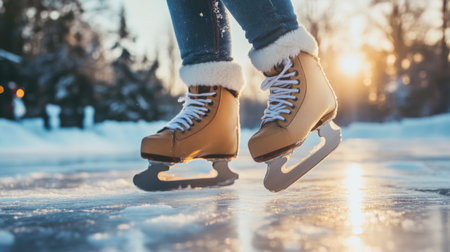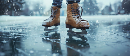 Enjoying the Thrill of Ice Skating A Close-Up of Skates Gliding on a Beautiful Winter Ice Rink