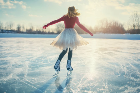 Winter Adventures A Skater Glides Gracefully on Ice, Capturing the Magic of Cold Season Sports