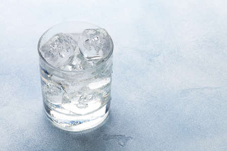 Glass of water with ice cubes. With copy space