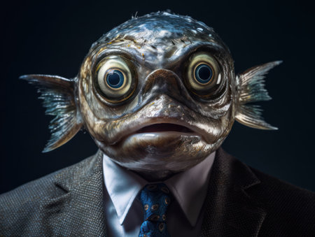 Sardine dressed in a business suit and wearing glasses close up portrait