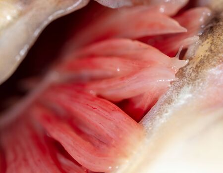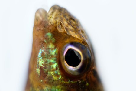 Eurasian ruffe also known as ruffe or pope. Macro photography river fish. Ultra-small depth of field, soft focus