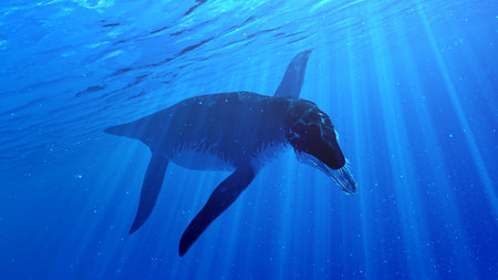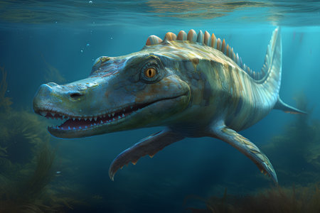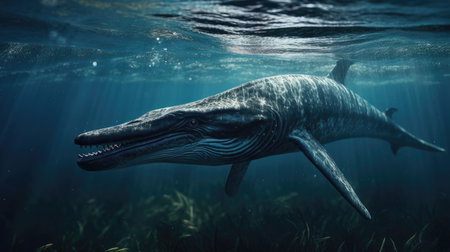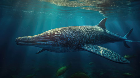 Underwater prehistoric creature or dinosaur swimming underwater. superlative generative AI image.