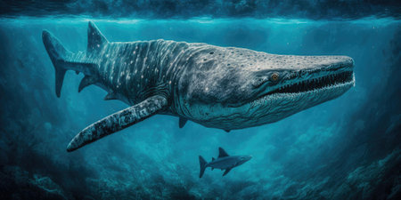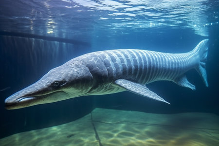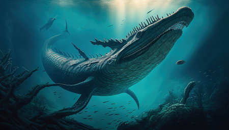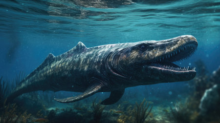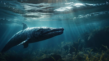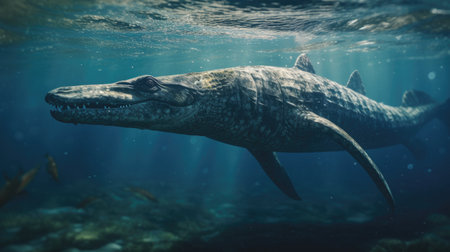 Underwater prehistoric creature or dinosaur swimming underwater. superlative generative AI image.