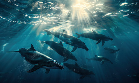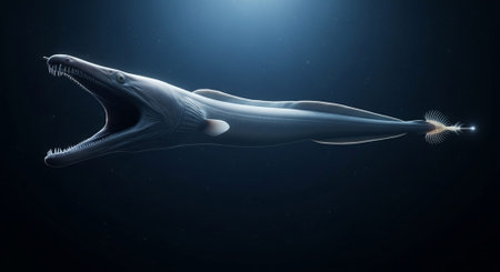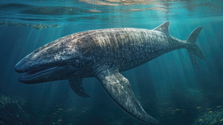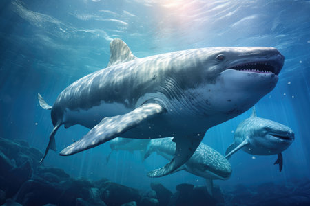 AI Generated. Silhouette of a Sea Creature Swimming in the Deep Ocean