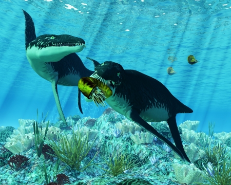 Liopleurodon - Liopleurodon was a large carnivorous marine reptile in the Jurassic epoch Here one is eating an Ammonite
