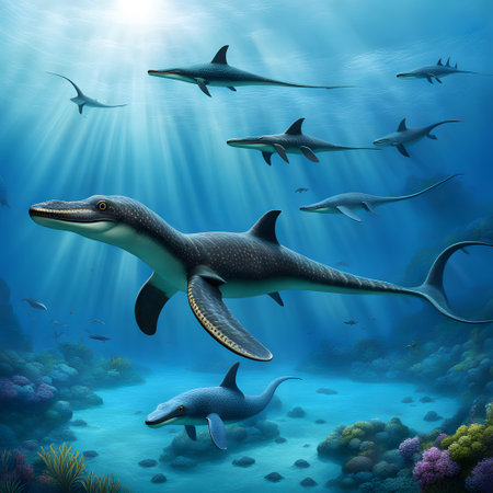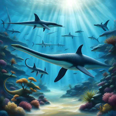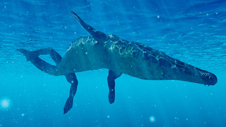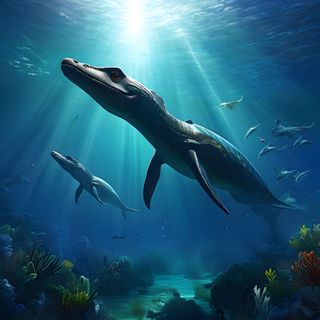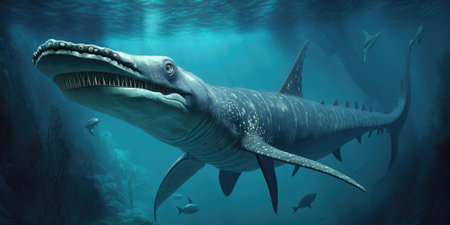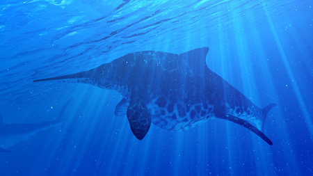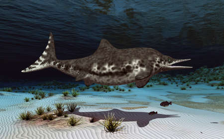 Ichthyosaur Eurhinosaurus in an underwater landscape