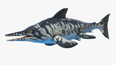3D rendering of a large marine extinct reptile Mosasaur isolated on white background