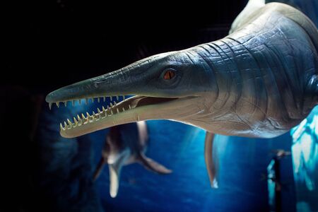 VLADIVOSTOK, RUSSIA - AUGUST 18, 2018: Prehistoric underwater reptiles, exposition in oceanarium