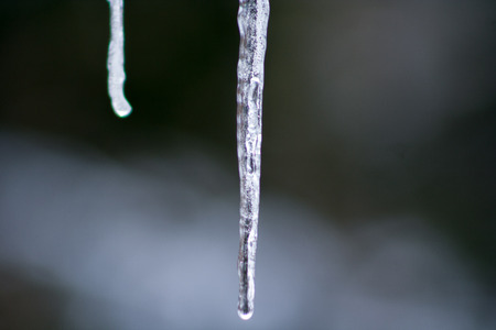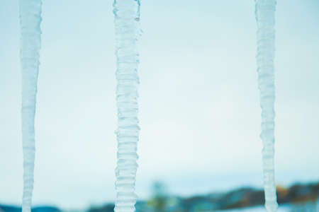 Icicles on a blue background. Close-up. Shallow depth of field.