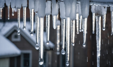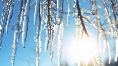 the mesmerizing world of icicles as they dangle gracefully from rooftops and tree branches. the delicate beauty of nature's frozen artistry, capturing the essence of winter's enchantment.