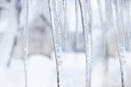 Transparent icicles on blurred background