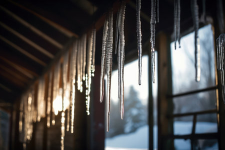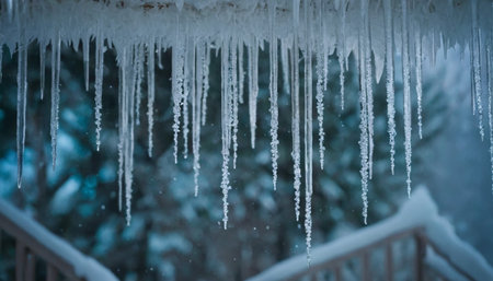 the mesmerizing world of icicles as they dangle gracefully from rooftops and tree branches. the delicate beauty of nature's frozen artistry, capturing the essence of winter's enchantment.