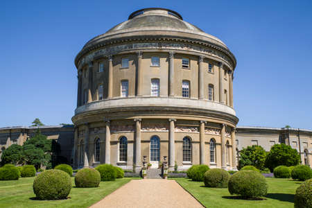 View of the pantheon building at Stourhead gardens in Wiltshire in autumn.