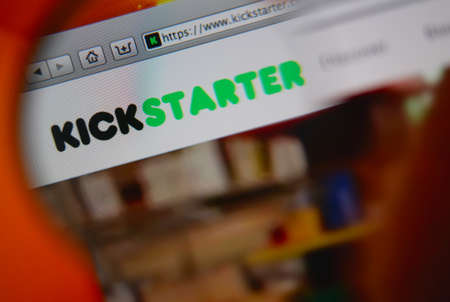 LISBON, PORTUGAL - AUGUST 3, 2014: Photo of Kickstarter homepage through a magnifying glass. Kickstarter is a crowdfunding platform.