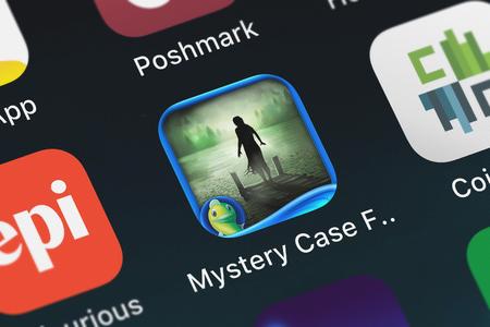 London, United Kingdom - October 05, 2018: Close-up shot of the Mystery Case Files: Shadow Lake Collector's Edition (Full) application icon from Big Fish Games, Inc on an iPhone.