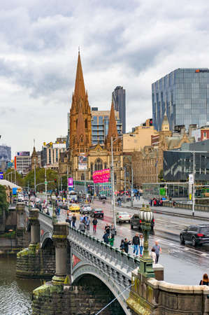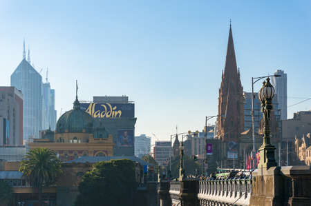 Melbourne, Australia - April 18, 2017: Flinders station and St Pauls Cathedral in Melbourne CBD