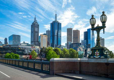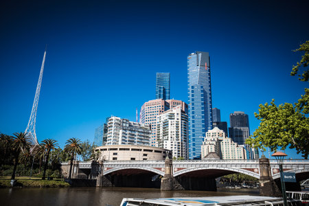 Melbourne, Australia - October 9, 2014: View of the city center from the Princess bridge