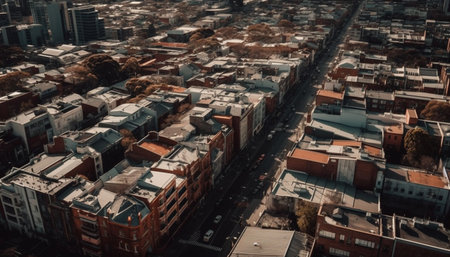 skyline with view of modern city, showing towering buildings and bustling streets, created with generative ai
