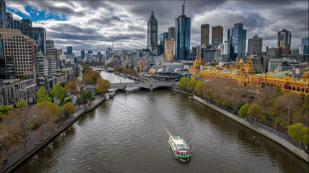 Capture the breathtaking beauty of Melbourne with this aerial view showcasing its skyline, Yarra River, and vibrant urban life.